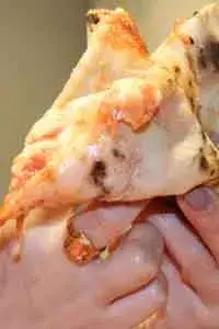 Pizza with tomato and some cheap local spices like oregano and garlic was originally sold in slices as street food especially to poor passers.